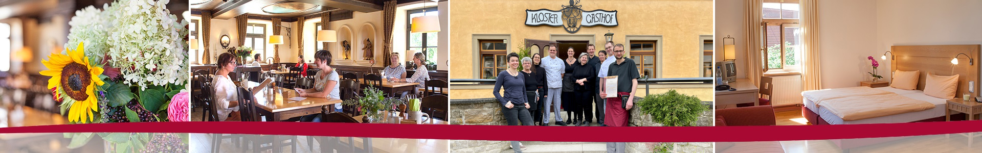 Gleichzeitig bietet der Klostergasthof Gelegenheit, die Vielzahl an liebevoll hergestellten Produkten zu verkosten. Genießen Sie im Sommer unseren Biergarten oder die Terrasse. Das angenehme Ambiente und die Ruhe des ehemaligen Zisterzienser-Klosters laden zum Entspannen ein.